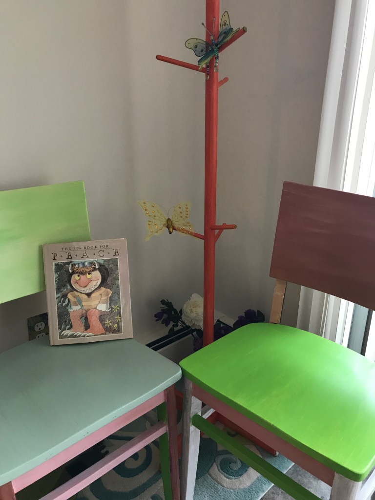 “Hey God,” I said as I stared at two chairs I plan to transform. “Is there joy in magenta?” God was stretched out on the couch, reading an old New Yorker. He lowered the magazine.