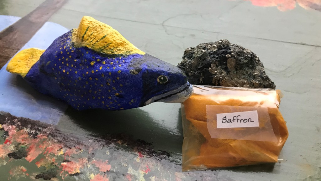 “Use it today,” The Untethered Oldest Woman urges. “Pudding. Cake. Chicken. Doesn’t matter. It’s the act of using it that will matter.” I’m doubtful, but she’s extraordinarily animated. “No, I’m serious,” she says, waving her many arms for emphasis. “It will matter. Use the saffron.”