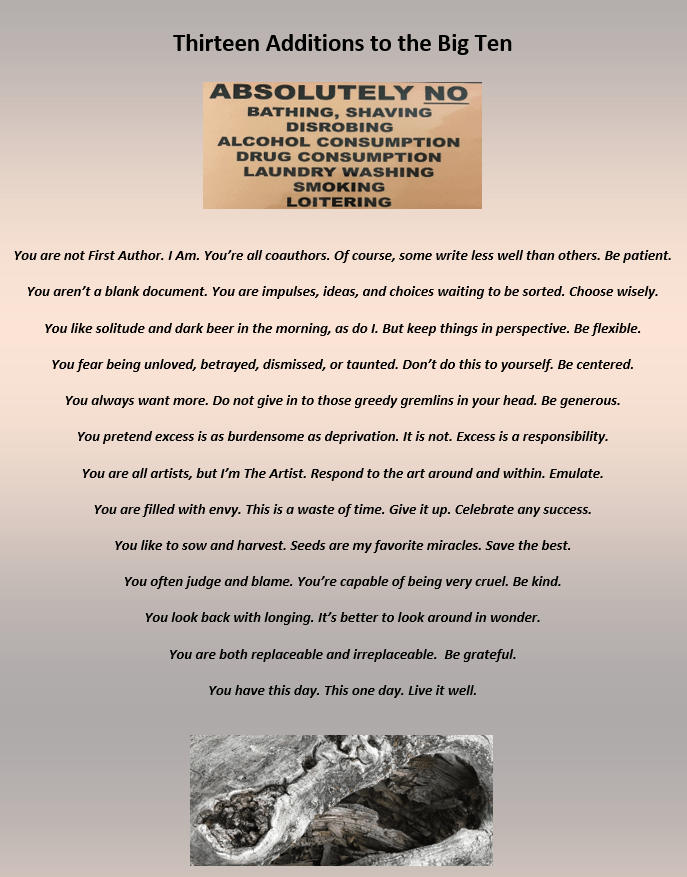 My bravado is laughable. Nowhere is safe for God. Not evolution. Not war. Not atmosphere. Not black holes, good intentions, bad karma. Perhaps The God’s most accurate description is They-Who-Are-Not-Safe, and they are especially unsafe in the grasping hands of human imagination.